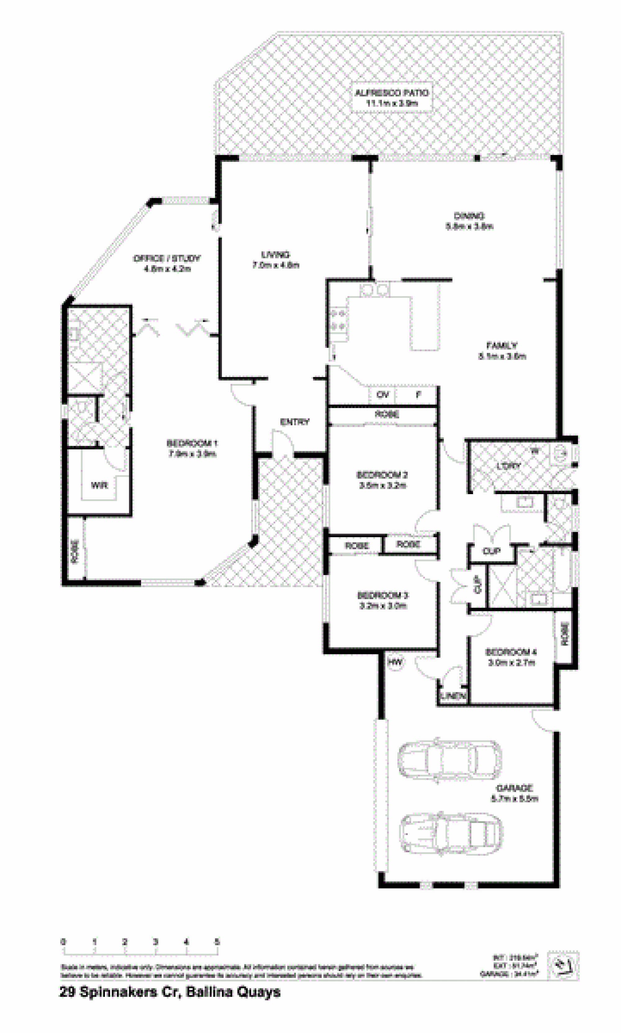 - Four bedrooms and the master features a massive 8m x 3.9m in size