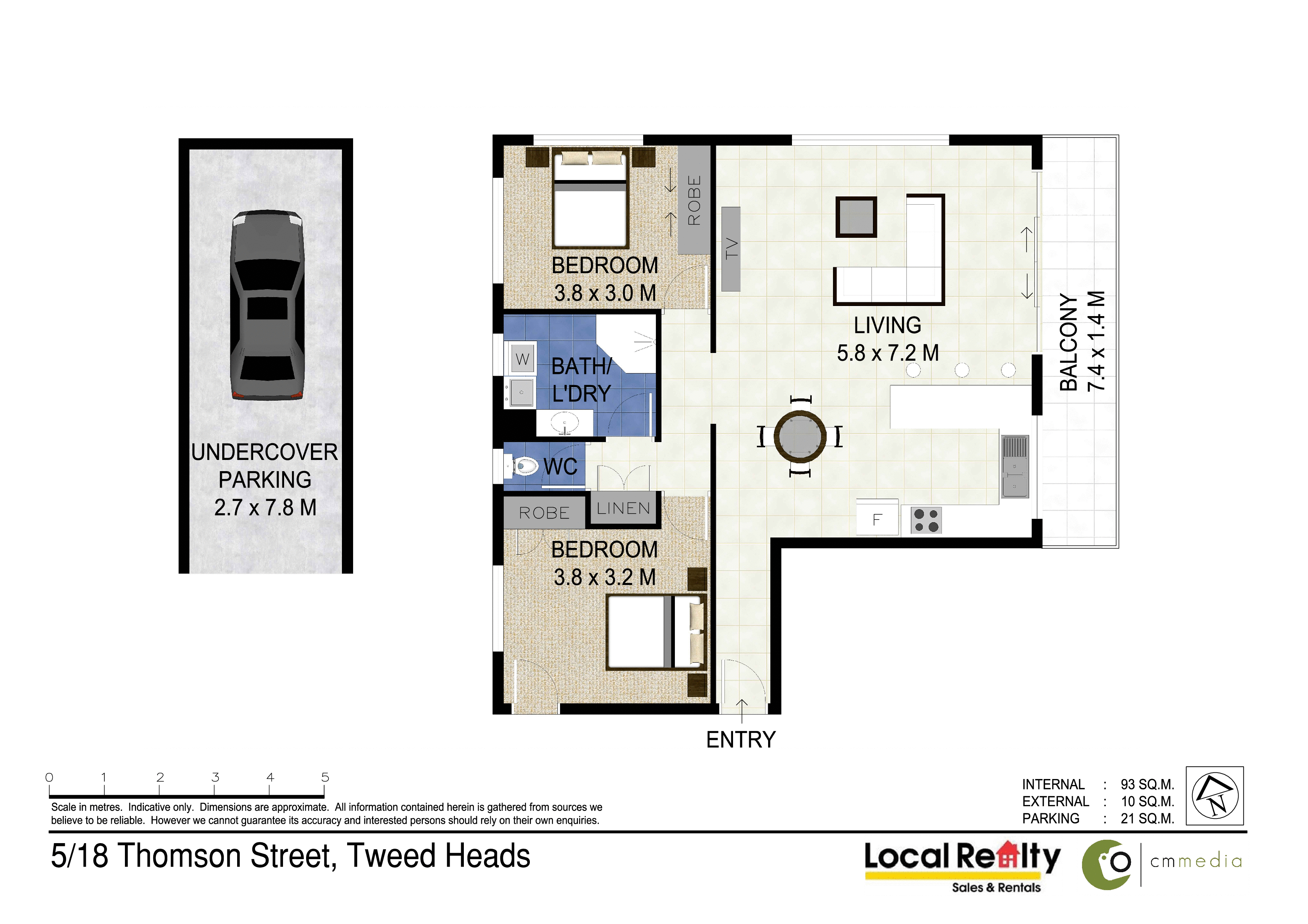 - building size: 123sqm, Internal: 93 sqm External: 10sqm Parking: 21sqm