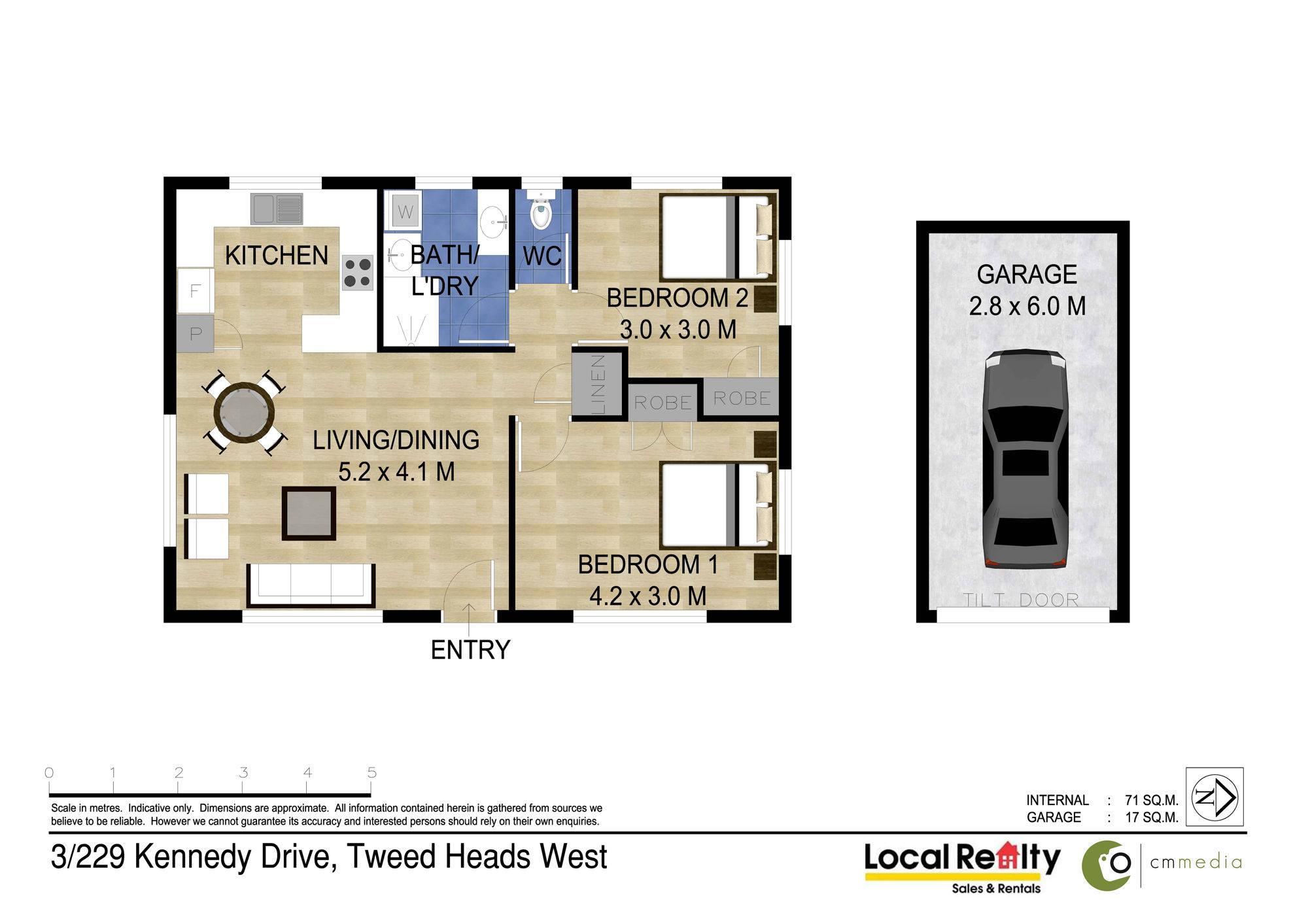 - Floor size 71sqm plus garage 17 total 88sqm